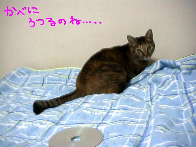 | 「CD-ROM裏の光の反射に反応。」 (りすにゃん 2歳3ヵ月) |